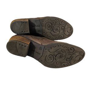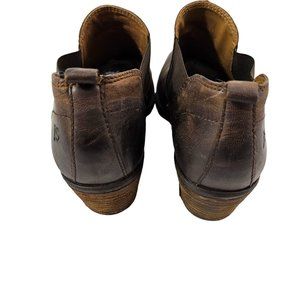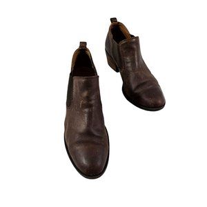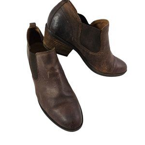 Stylish brown leather ankle boots. Slip-on design with elastic side panels. Comfortable and versatile.