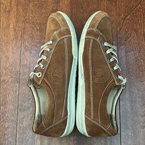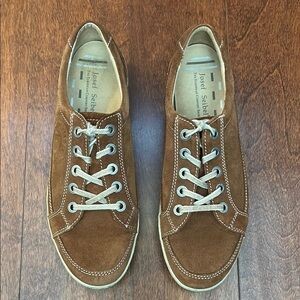 Josef Seibel Cognac Brown Suede Sneakers, Classic Lace-Up Design, Size 8