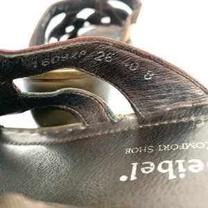 Josef Seibel European Comfort Shoe Gold/Brown Chunk Heel Slip On Size 40