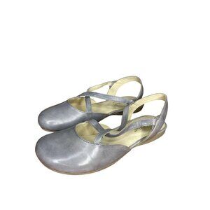 Josef Seibel Fiona 13 Light Blue Grey Leather Flats Cross-Strap & Slingback 37/6