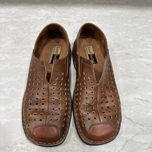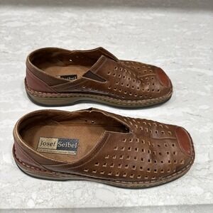 Josef Seibel Glenna Brown Perforated Slip-On Leather Loafers Women's 7 (37)