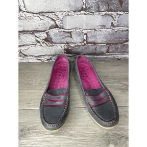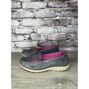 Josef Seibel Gray Leather Pink Stitching Penny Loafer Comfort Shoes Women 36EU/6