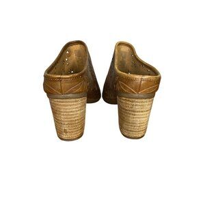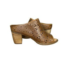 Josef Seibel Leather Open Toe Mules Size 37/6 Floral Cutout Design Stacked Heel