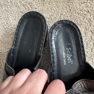 Josef Seibel Metallic Slip On Kitten Heel Sandals in Women's Size 38/ US Size 7 - 7.5. Shoes are doing some peeling/flaking inside, but still have wear in them if you don't mind or have a way to fix them. Please see close-up pictures for condition details and heel measurement. Open toe, backless, slip on, slides, easy on and off.