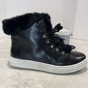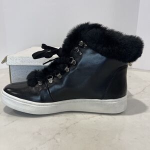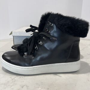 Josef Seibel NEW Black Faux Fur Trim Leather Lace Up Boot Sneaker EU 41 10-10.5