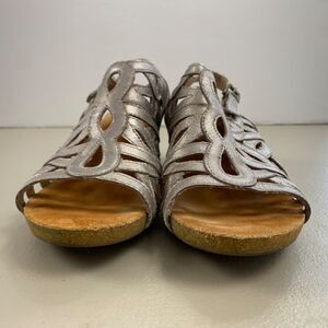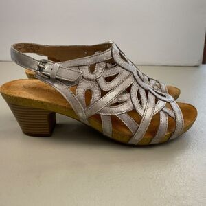 Josef Seibel Sandals Womens 40 Silver Leather Cutout Chunky Heel Slingback US 9