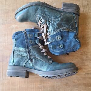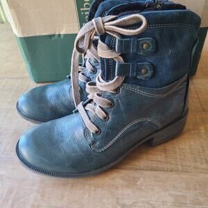 Josef Seibel Sandra Teal Green Blue Leather Boots Womens 37 Lace-Up Fleece Combat NEW