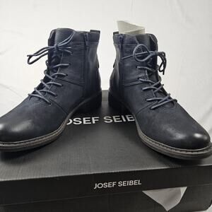 Josef Seibel Selena 06 Lace-Up Black Leather Women’s Combat Boots Size:US 9/EU40