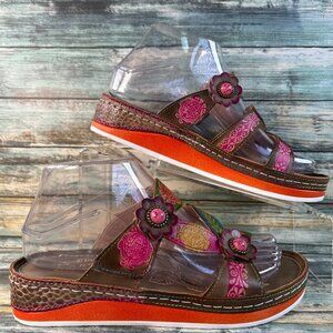 Josef Seibel Slide Sandal Womens Size 8.5-9 Tan Leather Block Heel Lightweight