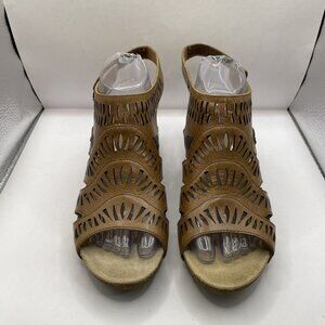 Josef Seibel Sunny Sandal Womens 39 US 8.5 Brown Leather High Heel Cutout