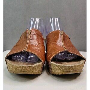 Josef Seibel Wedge Platform Cognac Leather Sandals Women’s EU 39 US 8 Meike