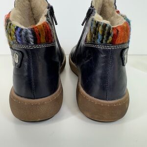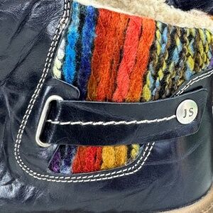 Discover all-day comfort and timeless European craftsmanship in these Josef Seibel Maren 07 women’s ankle boots. Made from premium navy leather with a unique multi-color knit trim, these boots offer a stylish twist on the classic Chelsea silhouette. Designed with dual side zippers for easy on-and-off, cushioned insoles for lasting comfort, and flexible rubber soles for confident traction.