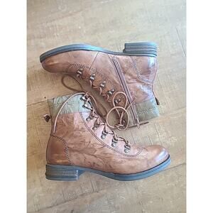 Josef Seibel Women's Sanja 09 Leather Combat Ankle Boot Cognac Brown Green EU 41