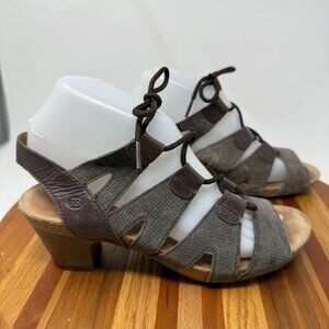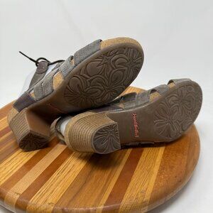 Josef Seibel Womens Size 38 / 7.5 Brown Strappy Lace-Up Sandals Block Heel Textu