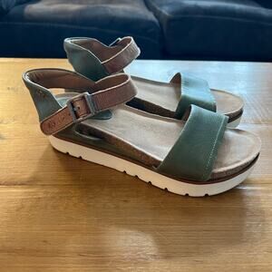 Josef Seibel Women’s Size 7 Green Leather Ankle Strap Sandals Comfort Walking Shoes
