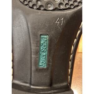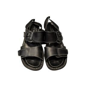 Good preowned condition, black leather sling, back open toe sandals womens 41 US 9.5. Some wear on leather by buckle please see all pictures.