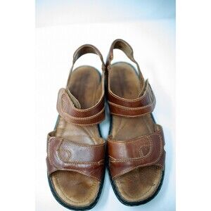 used condition. Explore the comfort and style of Josef Seibel with these brown leather sandals, perfect for any woman who values both fashion and function. EU size 41 and US size 9.5, these sandals feature adjustable straps for a custom fit, ensuring all-day comfort. The strappy design adds a touch of elegance to your casual ensemble, while the hook and loop closure provides a secure fit without compromising on style. Crafted with quality leather uppers, these sandals are durable and classic, designed to complement a wide range of summer outfits. Whether you're out for a casual stroll or enjoying an evening picnic, these Josef Seibel sandals are your go-to footwear for a chic and effortless season.