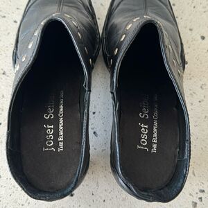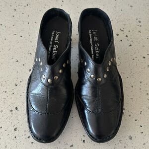 Josef Seibel Women’s Black Leather Western Inspired Studs Heels Slip On Mules Clogs Size EU36 / US5.5