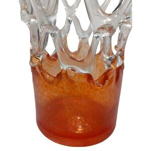 Josefina Krosno MCM Large 10 X 9 Orange Speckled Art Glass Vase Blown Lattice