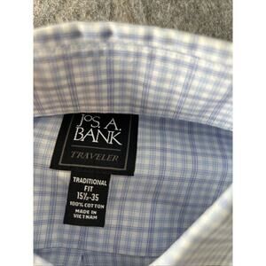 Joseph A Bank Traveler MenSize 15.5-35 Dress Shirt Long Sleeve Button Down Blue