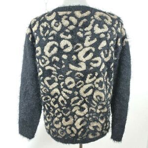 Joseph A Black Gray Fuzzy Shaggy Pullover Leopard Print Sweater Eyelash Knit M