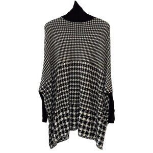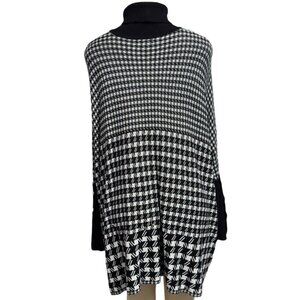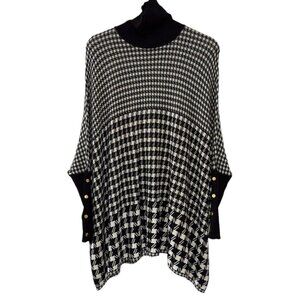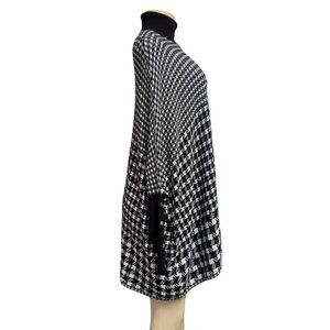Joseph A Black White Houndstooth Turtleneck Long Sleeve Poncho Copper Buttons