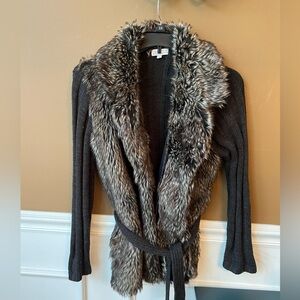 Joseph A Black and Gray Faux Fur Collar Cardigan Size Large