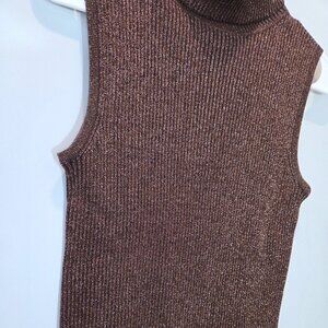 Joseph A. Brown and Gold Ribbed Silk Sleeveless Turtleneck Sweater Size M