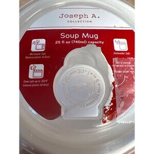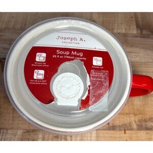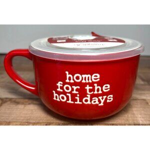 This 25oz soup mug from the Joseph A. Collection boasts a festive "Home for the Holidays" design. The mug's microwave and dishwasher-safe features ensure convenient use. The included lid enhances versatility and storage options, making it a practical addition to your kitchenware collection.