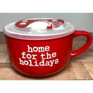Joseph A. Collection 25oz Red Soup Mug With Lid Home For The Holidays Design