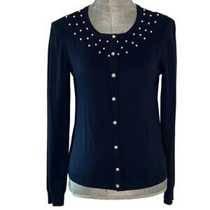 Joseph A. Crewneck Cardigan Knit Sweater XS Button Up with Pearl Detail NWT