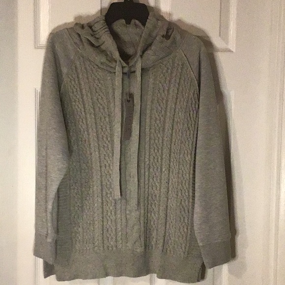 @lisaddillon This Grey sweater has a little bit of a cowl neck with a drawstring. Hope this helps.