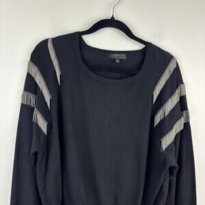 Step into western charm with this Joseph A. fringe sweater! The dark knit pullover design adds a touch of rustic elegance, perfect for cowgirls and fashionistas alike. Size L.