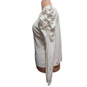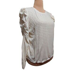 Joseph A L Womens Top Cream Long Sleeve Rhinestone Puff Shoulder Embellished