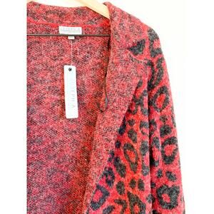 Joseph A Leopard Print Open Front Cardigan NWT Red Black Small