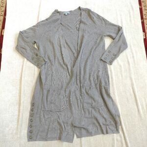 Joseph A. Long Open Front Grey Duster Cardigan Long Sleeve Size Large
