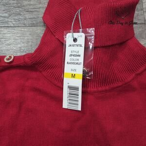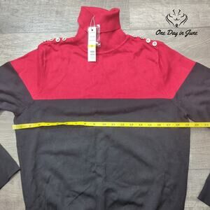 Sumptuous and striking, this luxuriant Joseph A. turtleneck sweater commands attention with its bold red and black palette. Crafted from silken rayon and nylon blend that drapes elegantly against the frame, this pristine piece arrives unworn with its original tags - a perfect marriage of comfort and sophisticated grace.