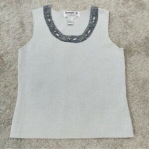 Joseph A. Metallic Beaded Neck Tank Top Size S