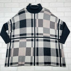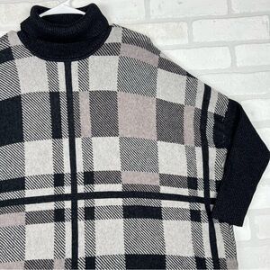 Joseph A. Plaid Turtleneck Sweater Black/Multi Long Dolman Sleeve Large, excellent oversized draped fit for a comfortable and flattering fit. Perfect for daily wear comfy sweater, work, errands, travel. Soft, looks great. Gentle use with no stains or rips. 28” chest, 29” length. #726