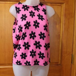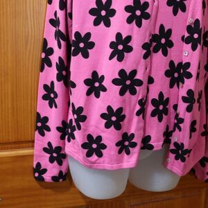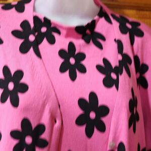 Joseph A. Qu'est Ce Bright Pink with Black Daisy Print Cardigan Sweater & Shell
