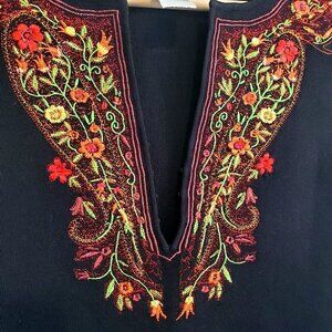 Joseph A. S Sweater V-neck Floral Embroidery Side Slits knit
