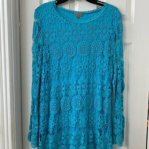 Joseph A. Size Large crochet over lining Mini dress (seems to run small). Like new condition & smoke free/pet free home. See photos for complete description/details.