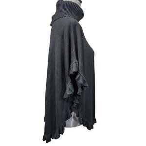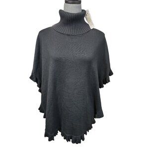 Joseph A Sweater Cape Black Ribbed Turtleneck Scalloped Pullover Womens Small