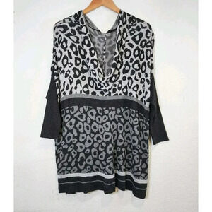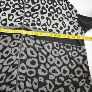 Joseph A Sweater Cardigan Hooded Women L Gray Leopard Print Zip Cozy Zip Front