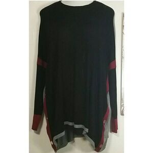 Joseph A Sweater Ladies Large Black Gray Color block Tight Knit Tunic