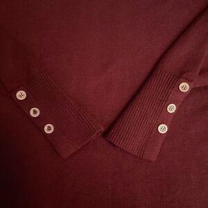 Sweater Pullover Turtleneck by Joseph A Windsor Wine Burgundy Maroon Purple Red Long Sleeves with Button Cuff Bling Detail Ribbed Hem and Cuffs Women Size Large