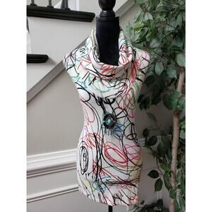Joseph A. Sweater Womens 1X White Geo Print Rayon Cowl Neck Sleeveless Pullover