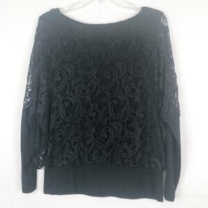 Joseph A. women's pullover lace black sweater. Scoop neck. Long sleeves. Drop ace shoulders. Long dolman sleeves. Banded bottom hem. Gently used. No stains, tears or holes.