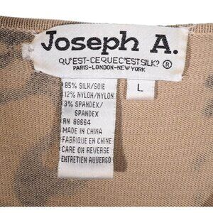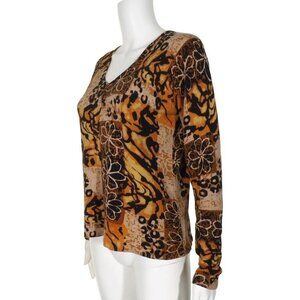 Joseph A Top Womens L Sweater Silk Blend Animal Print Brown Multi V Neck Stretch