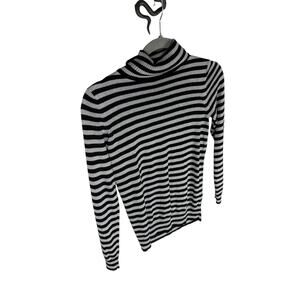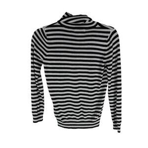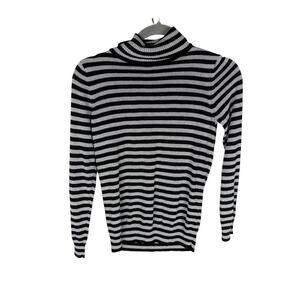 Joseph A Turtleneck Sweater Pullover Striped Metallic Statement Black Silver PS
